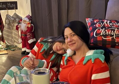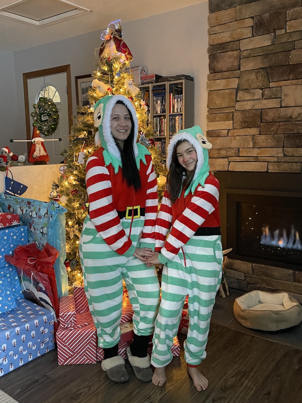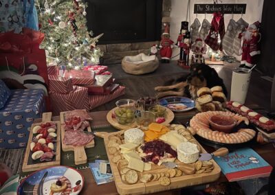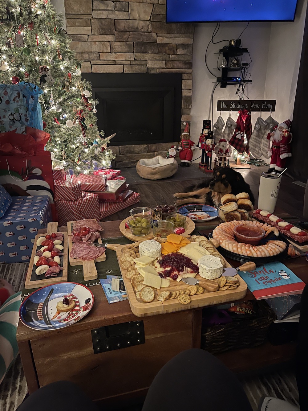 Christmas Eve arrived; Sarah and Payton were all geared up in the spirit of the season with their elf onesies! Lisa put together an awesome charcuterie board display paired with a wonderful prawn ring for Christmas Eve dinner. It was simply delightful! I “believe” we watched Polar Express as the movie choice this year. (did you get it?)